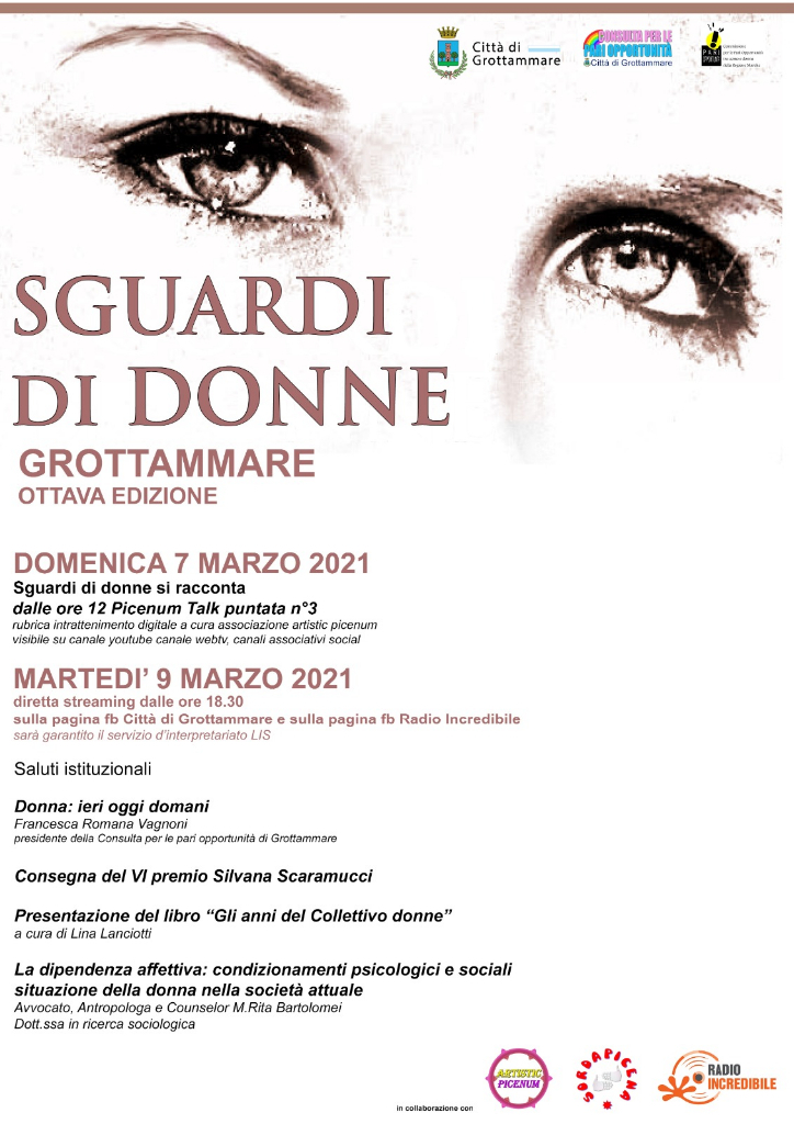 L’evento di martedì prossimo – su Facebook, alle pagine Città di Grottammare o Radio Incredibile - sarà preceduto domenica 7 marzo alle ore 12 da “Sguardi di donne si racconta”, a cura dell’Associazione Artistic Picenum, per la rubrica “Picenum Talk” su Youtube.