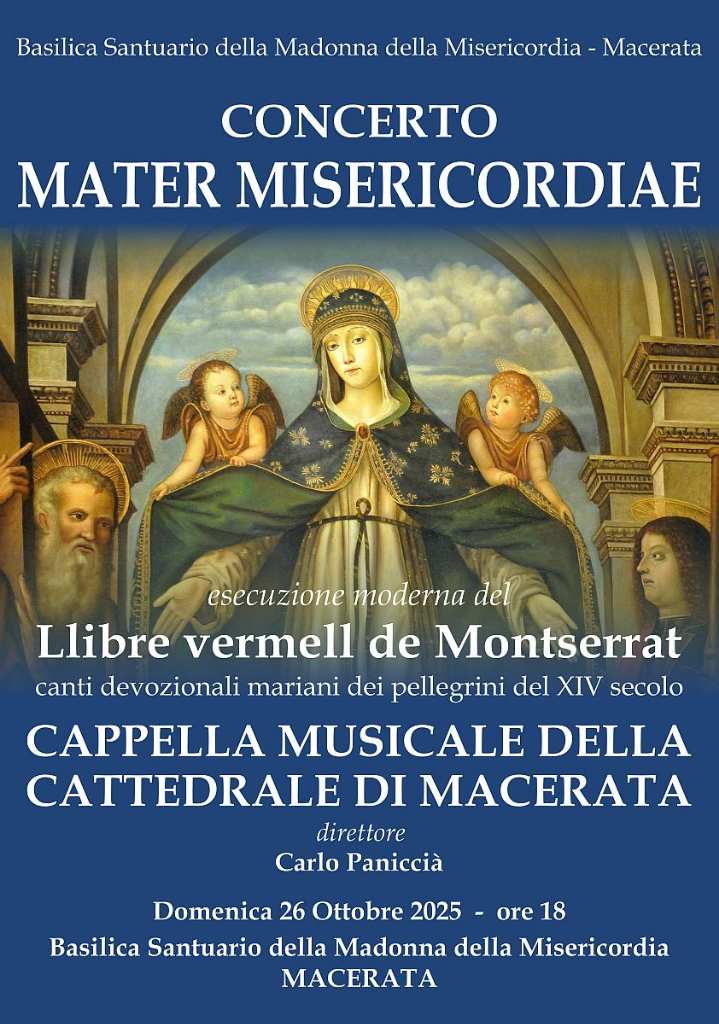 La Cappella Musicale della Cattedrale di Macerata diretta da Carlo Paniccià torna protagonista della vita culturale e spirituale cittadina con un appuntamento di straordinaria suggestione. Domenica 26 ottobre 2025, alle ore 18, nella Basilica Santuario della Madonna della Misericordia a Macerata, la Cappella Musicale proporrà l’esecuzione integrale del Llibre Vermell de Montserrat, uno dei più preziosi testimoni della musica medievale europea.