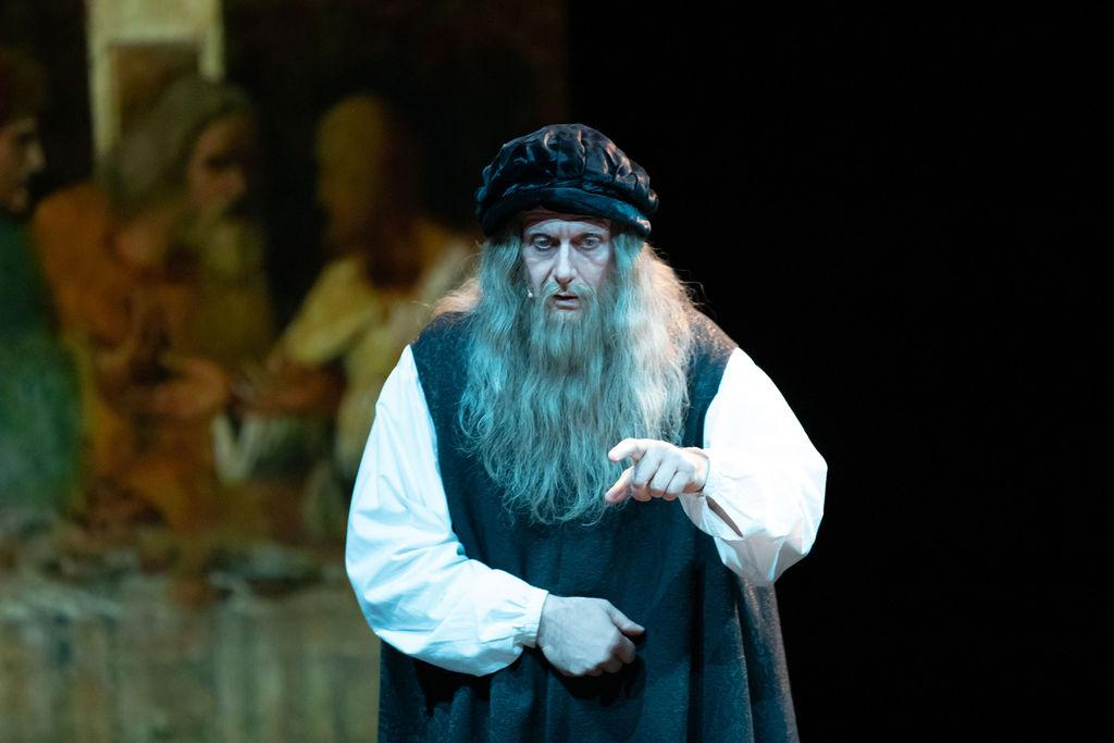 Lo spettacolo, su pensieri e parole autentiche di Leonardo, con costume d’epoca e un incredibile make-up, debuttò per Expo 2015 poi raccontato e rappresentato, dalla National Gallery di Londra, alla Morgan Library di New York, all’Ermitage di San Pietroburgo, al CERN di Ginevra, al Castello di Clos Lucè nella Loira. Con premi e successi in particolare in USA ma anche a Tokyo, Città del Messico, Manila, Parigi, Oslo, Singapore, Hong Kong, etc. In Italia è stato allestito nei principali teatri come a Venezia al Teatro La Fenice, Milano al Piccolo Teatro, a Parma al Teatro Regio, a Vinci al Teatro di Vinci. Dallo spettacolo è stato tratto l’omonimo film coprodotto con Rai Cinema pluripremiato nei festival cinematografici.